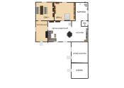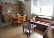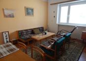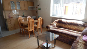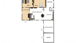 Dispozícia: vstupná hala, oproti izba, na pravo obývacia izba prepojená s kuchyňou, oproti kúpeľňa a wc, na lavo ďalšia izba.