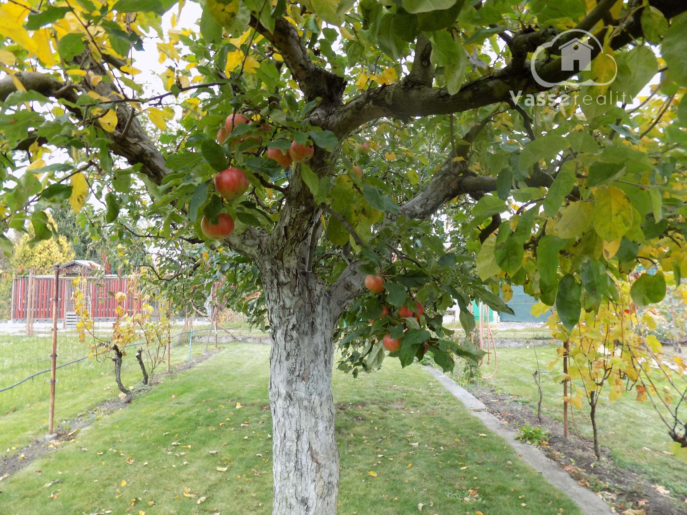 Pozemok je starostlivo udržiavaný a osadený rôznymi ovocnými stromami a kríkmi, ktoré vytvárajú príjemné prostredie a zároveň poskytujú chutnú úrodu.
