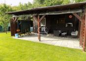 Na pozemku sa nachádza aj bazén s filtráciou a solárnym ohrevom, ktorý je možné zakryť zasúvacou fóliou. Jacuzzi pre štyri osoby je ideálnym miestom na relaxáciu. Okrem toho je k dispozícii aj vonkajšia toaleta, náraďovňa a plechová búda, solárna sprcha vonkajšia . Voda je zabezpečená z vrtanej studne a chata je napojená na elektrickú sieť, internet s wifi pripojením na kamerový systém s bezpečnostným zariadením .Chata sa predáva s kompletným vnútorným aj vonkajším zariadením .