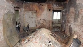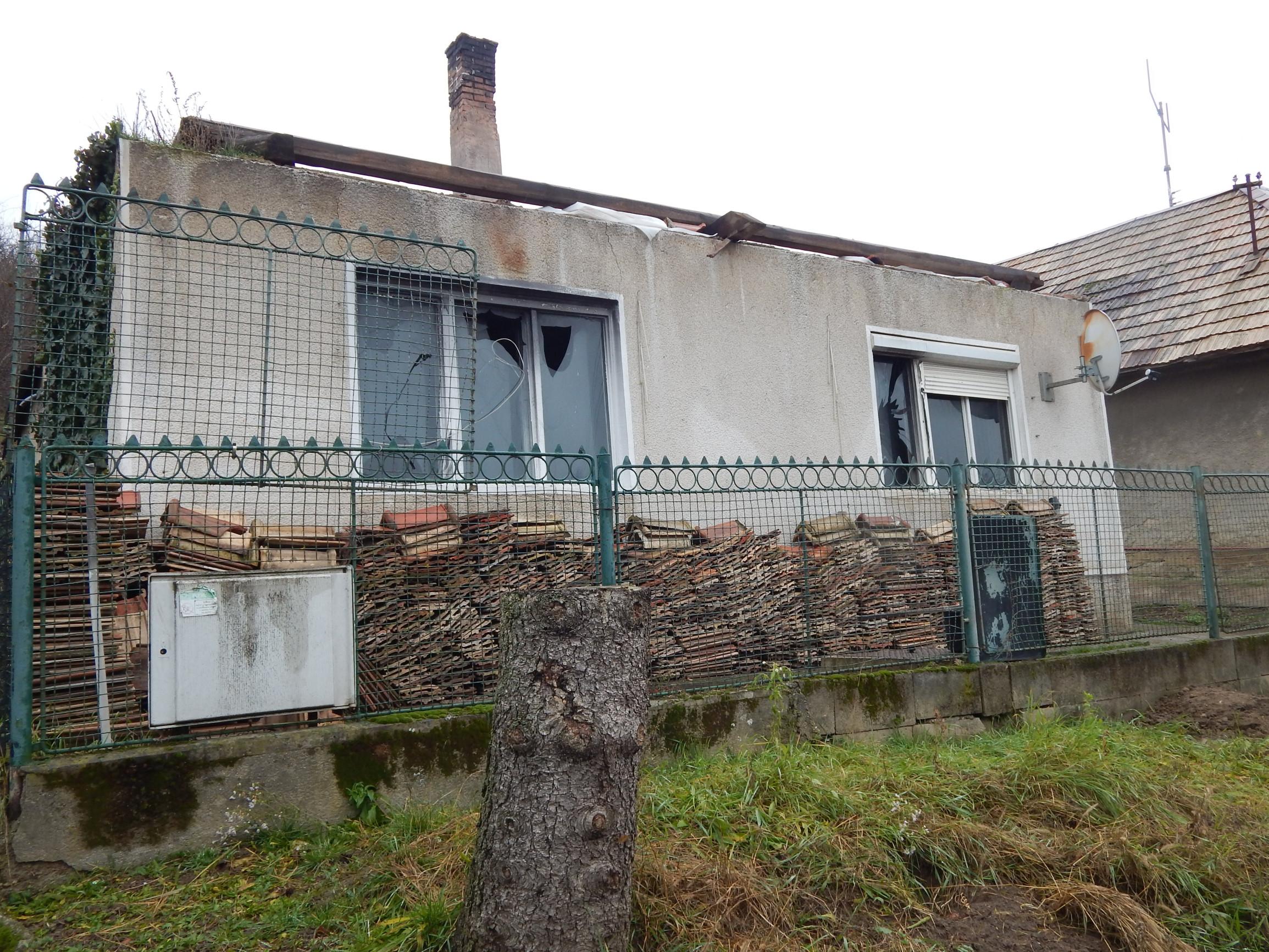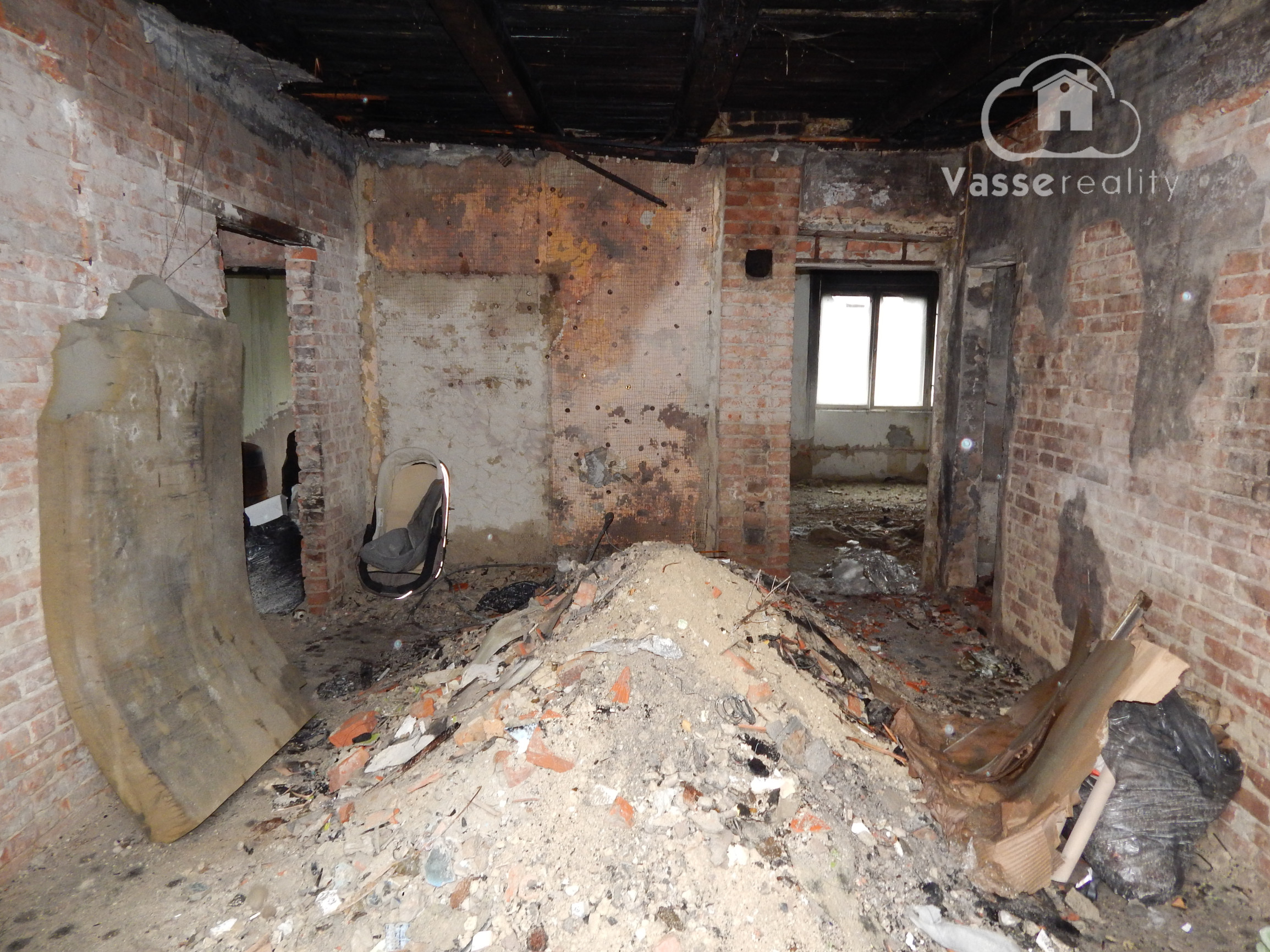 Poškodenie: Dom bol v minulosti poškodený požiarom.