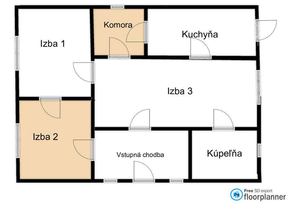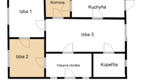 vstupná hala, 3 izby, kuchyňa, špajza, kúpeľňa.