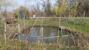 Exteriér: Súkromné jazierko s rybkami na pozemku, ovocné a okrasné stromy, vonkajšie posedenie v tieni, suché WC.